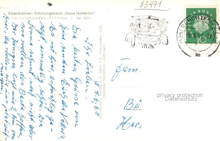 73763588 alte Postkarte Schoenau Berchtesgaden Eisenbahner Erholungsheim Haus Hubertus postalisch gelaufen Erhaltung siehe scans [FriedD77] KatCode: 11110009172116