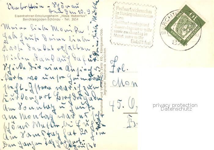 73174031 alte Postkarte Schoenau Berchtesgaden Eisenbahner Erholungsheim Haus Hubertus postalisch gelaufen Erhaltung siehe scans [FriedD77] KatCode: 11110009172116