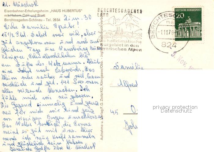 73125758 alte Postkarte Schoenau Berchtesgaden Eisenbahner-Erholungsheim Haus Hubertus postalisch gelaufen Erhaltung siehe scans [LiesaD40] KatCode: 11110009172116