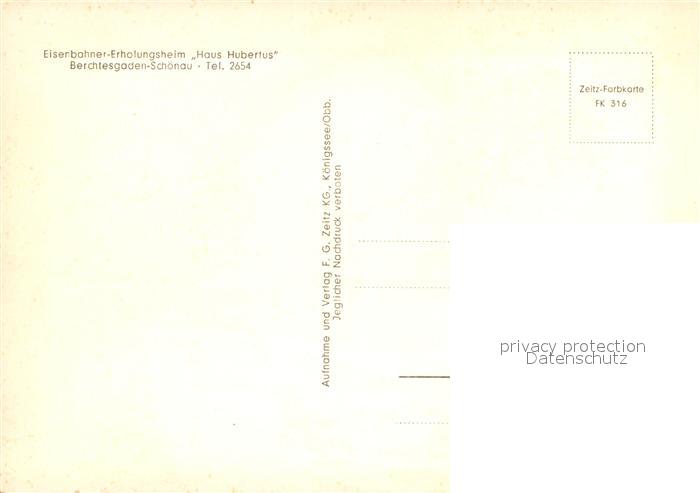 73015235 Schoenau Berchtesgaden Eisenbahner-Erholungsheim Haus Hubertus postalisch nicht gelaufen Erhaltung siehe scans [NatalD47] KatCode: 11110009172116