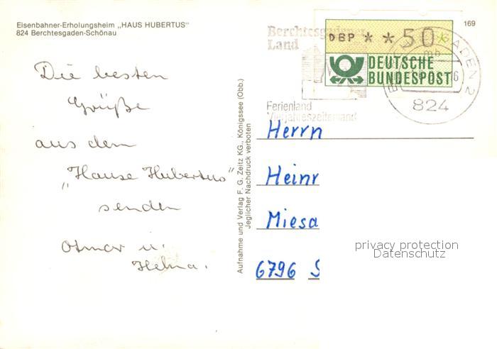 72962682 alte Postkarte Schoenau Berchtesgaden Erholungsheim Haus Hubertus postalisch gelaufen Erhaltung siehe scans [NatalD47] KatCode: 11110009172116