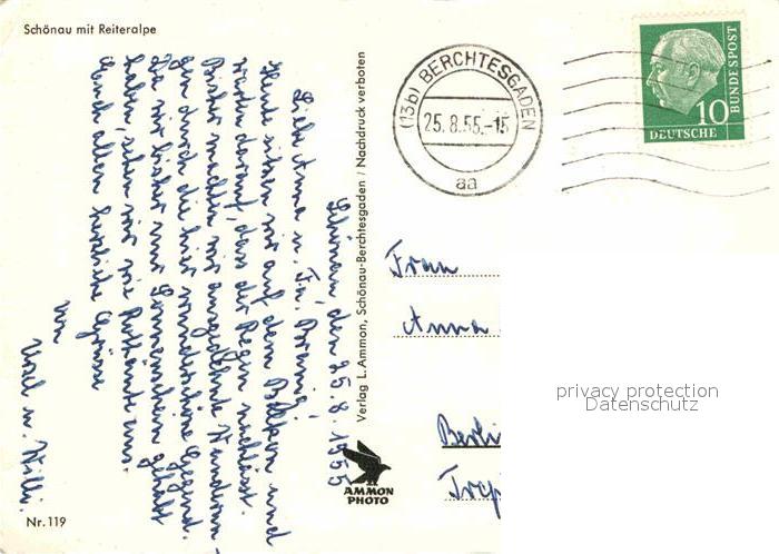 72691517 alte Postkarte Schoenau Berchtesgaden Fliegeraufnahme mit Reiteralpe postalisch gelaufen Erhaltung siehe scans [LiesaD40] KatCode: 11110009172116