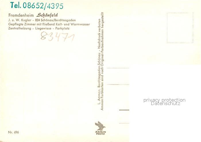 73654196 Schoenau Berchtesgaden Fremdenheim Schoenfeld Berchtesgadener Alpen postalisch nicht gelaufen Erhaltung siehe scans [FriedD77] KatCode: 11110009172116