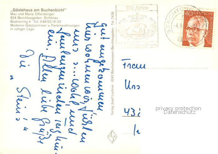 73332211 alte Postkarte Schoenau Berchtesgaden Gaestehaus am Buchenbichl postalisch gelaufen Erhaltung siehe scans [LiesaD40] KatCode: 11110009172116