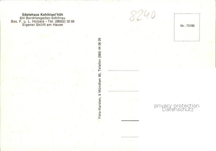 72443236 Schoenau Berchtesgaden Gaestehaus Kohlhiaslhoeh postalisch nicht gelaufen Erhaltung siehe scans KatCode: 11110009172116