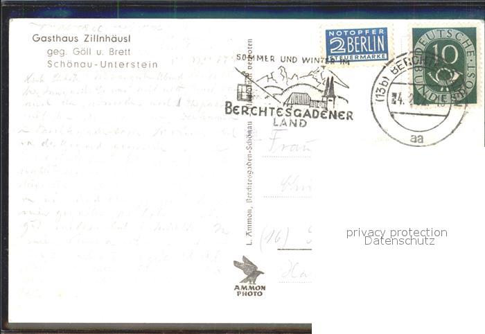72145205 alte Postkarte Schoenau Berchtesgaden Gasthaus Zillnhaeusl mit Goell und Brett postalisch gelaufen Erhaltung siehe scans KatCode: 11110009172116