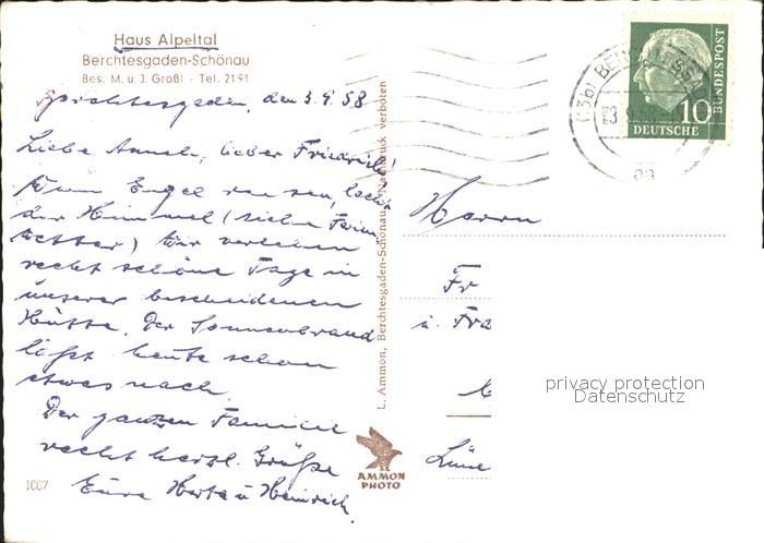 71894692 alte Postkarte Schoenau Berchtesgaden Haus Alpeltal postalisch gelaufen Erhaltung siehe scans KatCode: 11110009172116