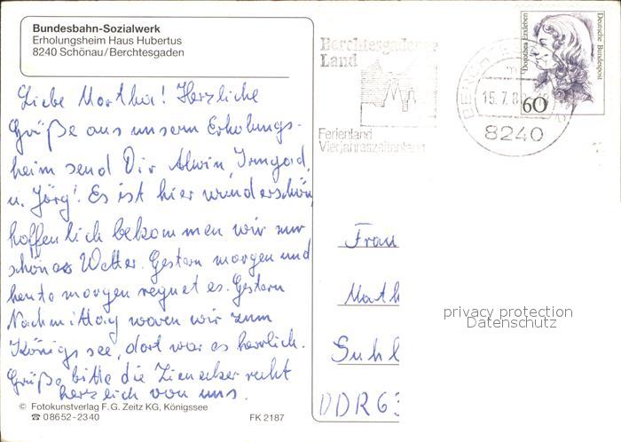 71909243 alte Postkarte Schoenau Berchtesgaden Haus Hubertus postalisch gelaufen Erhaltung siehe scans KatCode: 11110009172116