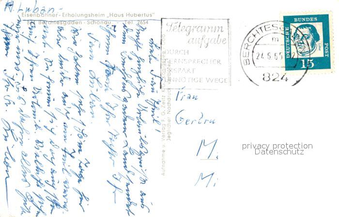 73543544 alte Postkarte Schoenau Berchtesgaden Haus Hubertus Panorama Koenigsee postalisch gelaufen Erhaltung siehe scans [WerneD78] KatCode: 11110009172116