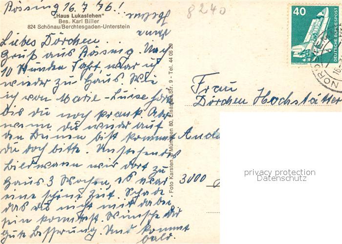 73047489 alte Postkarte Schoenau Berchtesgaden Haus Lukaslehen Gastraum Park Terrasse postalisch gelaufen Erhaltung siehe scans [WerneD78] KatCode: 11110009172116