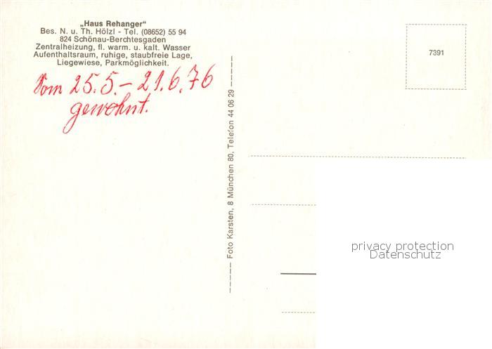 73841426 alte Postkarte Schoenau Berchtesgaden Haus Rehanger postalisch gelaufen Erhaltung siehe scans [WerneD78] KatCode: 11110009172116
