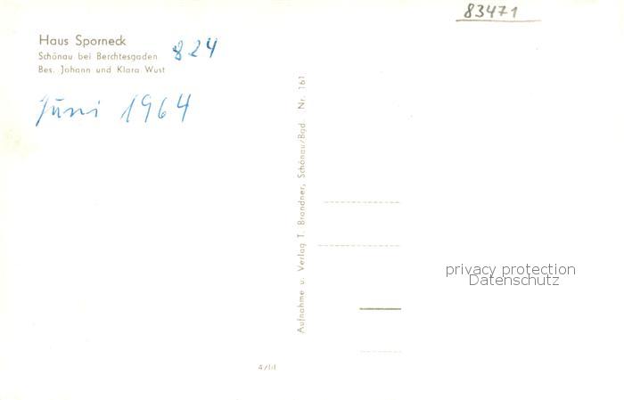 73762469 Schoenau Berchtesgaden Haus Sporneck Aussenanasicht postalisch nicht gelaufen Erhaltung siehe scans [LiesaD40] KatCode: 11110009172116