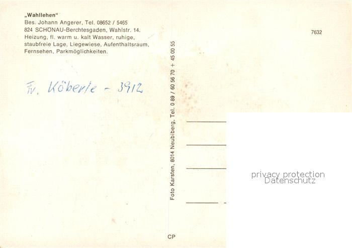 73611462 Schoenau Berchtesgaden Haus Wahllehen postalisch nicht gelaufen Erhaltung siehe scans [WerneD78] KatCode: 11110009172116