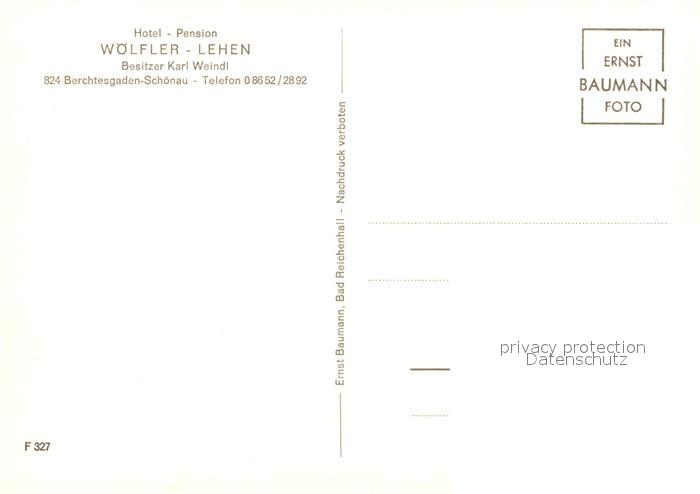 73324410 Schoenau Berchtesgaden Hotel Pension Woelfler Lehen Alpenblick postalisch nicht gelaufen Erhaltung siehe scans [FriedD77] KatCode: 11110009172116