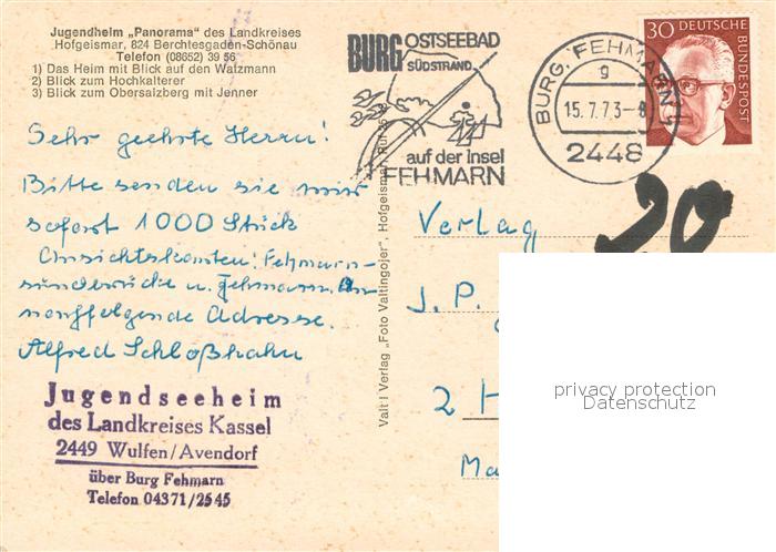 73678912 alte Postkarte Schoenau Berchtesgaden Jugendheim Panorama Blick auf Watzmann Hochkalterer Obersalzberg Jenner Alpen postalisch gelaufen Erhaltung siehe scans [FriedD77] KatCode: 11110009172116