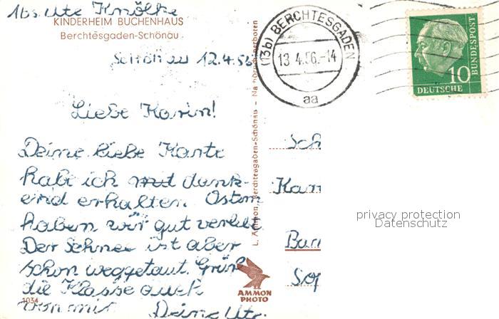 73299458 alte Postkarte Schoenau Berchtesgaden Kinderheim Buchenhaus postalisch gelaufen Erhaltung siehe scans [PaolaD17] KatCode: 11110009172116