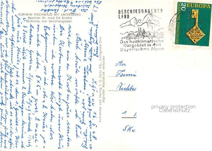 73765768 alte Postkarte Schoenau Berchtesgaden Kurheim Hochwald mit Untersberg postalisch gelaufen Erhaltung siehe scans [WerneD78] KatCode: 11110009172116