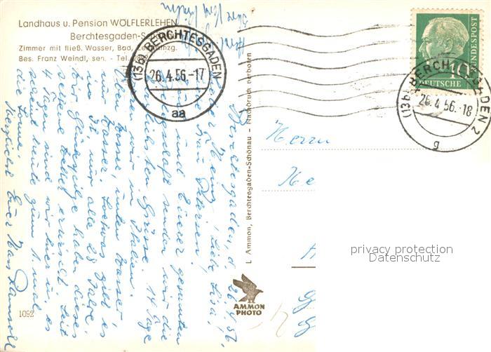 73644539 alte Postkarte Schoenau Berchtesgaden Landhaus Pension Woelflerlehen postalisch gelaufen Erhaltung siehe scans [FriedD77] KatCode: 11110009172116