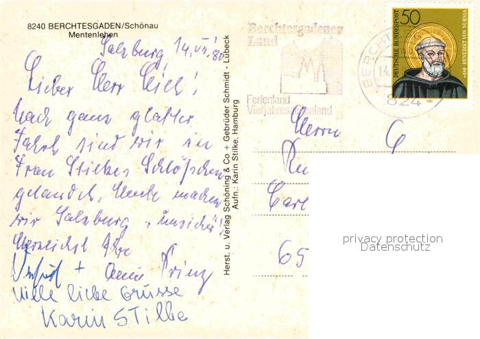 72831933 alte Postkarte Schoenau Berchtesgaden Mentenlehen postalisch gelaufen Erhaltung siehe scans [FriedD77] KatCode: 11110009172116