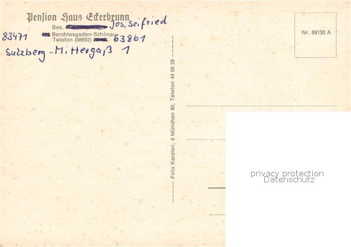 73654865 Schoenau Berchtesgaden Pension Haus Eckerbrunn postalisch nicht gelaufen Erhaltung siehe scans [WerneD78] KatCode: 11110009172116
