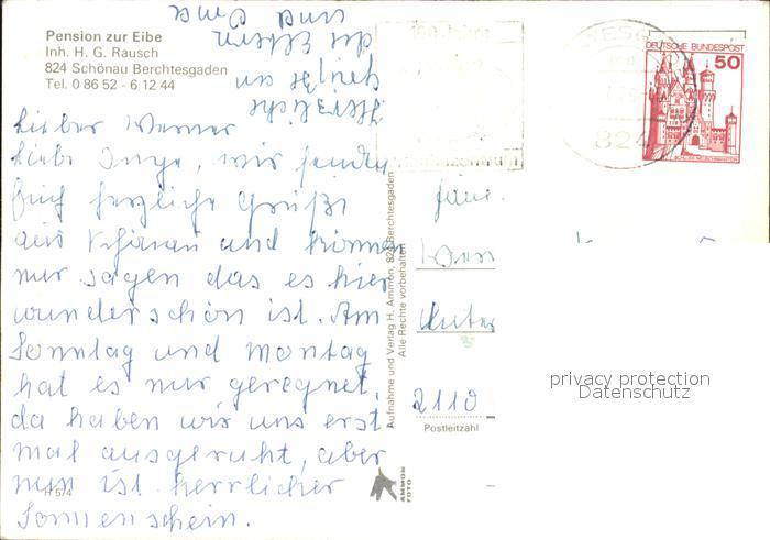 72463831 alte Postkarte Schoenau Berchtesgaden Pension zur Eibe postalisch gelaufen Erhaltung siehe scans KatCode: 11110009172116