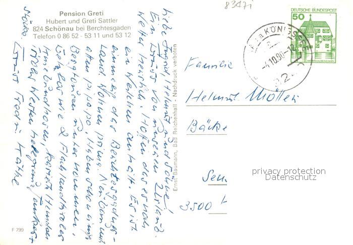 73030607 alte Postkarte Schoenau Berchtesgaden Penson Greti postalisch gelaufen Erhaltung siehe scans [KathaD81] KatCode: 11110009172116