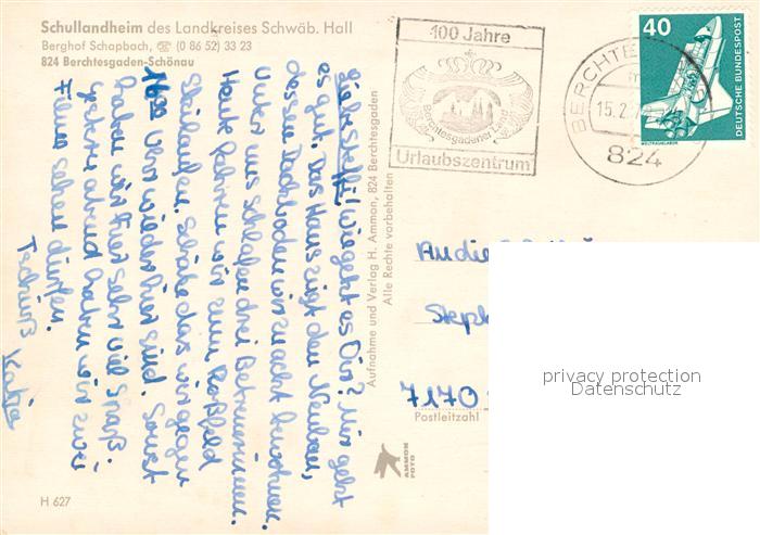 73616242 alte Postkarte Schoenau Berchtesgaden Schullandheim Berghof Schapbach postalisch gelaufen Erhaltung siehe scans [WerneD78] KatCode: 11110009172116