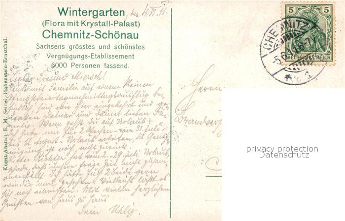 32980233 alte Postkarte Schoenau Chemnitz Wintergarten Krystall-Palast postalisch gelaufen Erhaltung siehe scans [NatalD47] KatCode: 11110014161000