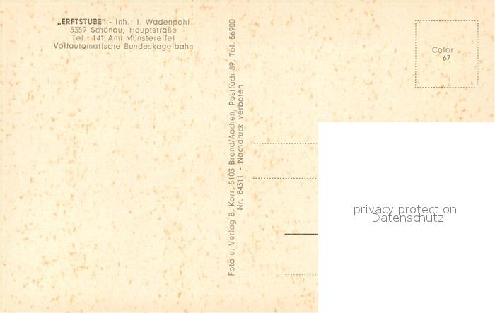 33317538 Schoenau Eifel Erfssrube Bundeskegelbahn postalisch nicht gelaufen Erhaltung siehe scans [Darjalle] KatCode: 11110005366004