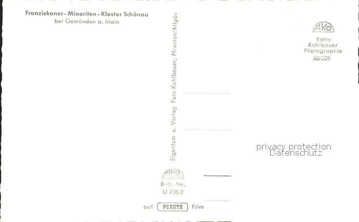 72177371 Schoenau Gemuenden Franziskaner Minoriten Kloster postalisch nicht gelaufen Erhaltung siehe scans KatCode: 11110009677131