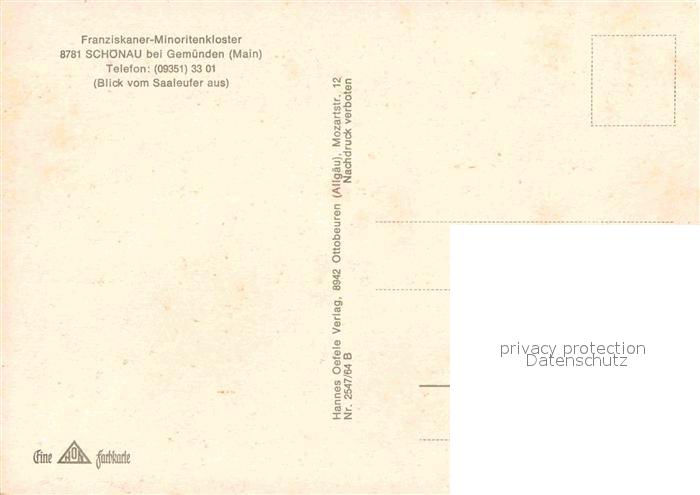 72839417 Schoenau Gemuenden Franziskaner Minoritenkloster Blick vom Saaleufer aus postalisch nicht gelaufen Erhaltung siehe scans [FriedD77] KatCode: 11110009677131