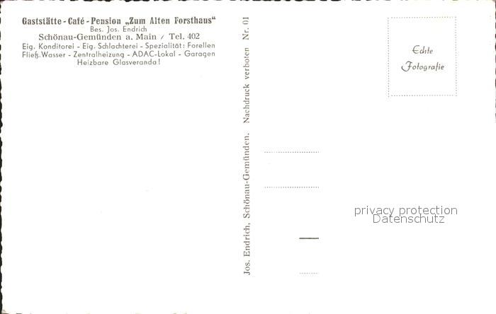 72097197 Schoenau Gemuenden Teilansicht Gaststaette Zum alten Forsthaus postalisch nicht gelaufen Erhaltung siehe scans KatCode: 11110009677131