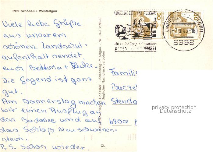 73542229 alte Postkarte Schoenau Gruenenbach Fliegeraufnahme postalisch gelaufen Erhaltung siehe scans [WerneD78] KatCode: 11110009776113
