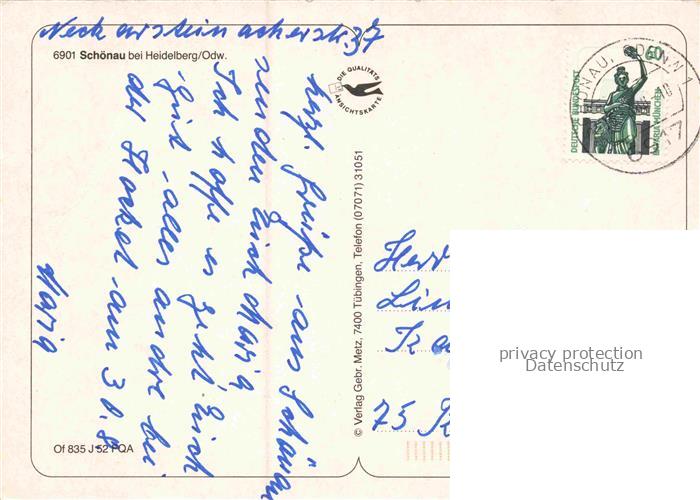 74048626 alte Postkarte Schoenau Heidelberg Odenwald Brunnen Fachwerkhaus Kirche Teilansichten postalisch gelaufen Erhaltung siehe scans [WerneD78] KatCode: 11110008226080