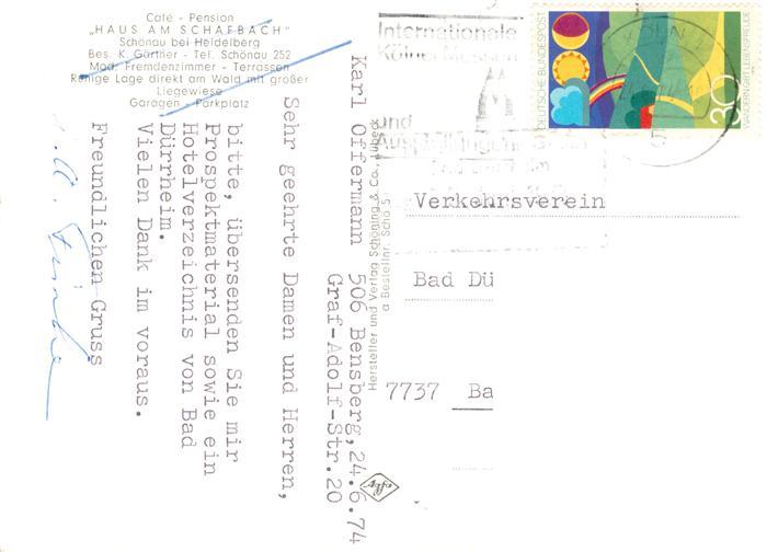 73887330 Schoenau Heidelberg Odenwald Cafe Pension Haus am Schafbach Bauernstube Kaminecke Weinstube postalisch nicht gelaufen Erhaltung siehe scans [FriedD77] Frie Katcode 11110008226080