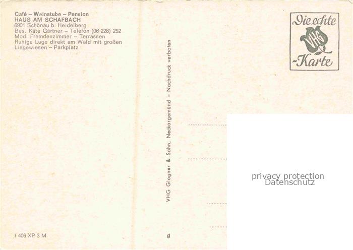 74048584 Schoenau Heidelberg Odenwald Cafe Weinstube Haus am Schafbach postalisch nicht gelaufen Erhaltung siehe scans [WerneD78] KatCode: 11110008226080