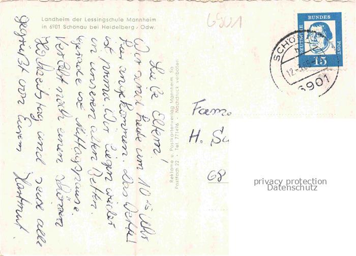 74048543 alte Postkarte Schoenau Heidelberg Odenwald Landheim der Lessingschule postalisch gelaufen Erhaltung siehe scans [WerneD78] KatCode: 11110008226080