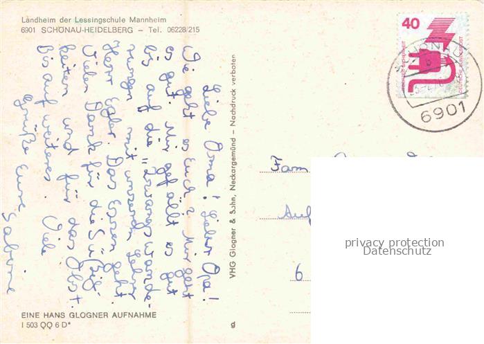 74048500 alte Postkarte Schoenau Heidelberg Odenwald Park Landheim Lessingschule Gastraum postalisch gelaufen Erhaltung siehe scans [WerneD78] KatCode: 11110008226080