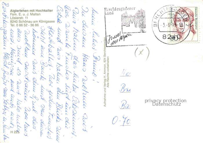 74100221 alte Postkarte Schoenau Koenigssee Aiglerlehen mit Hochkalter Berchtesgadener Alpen postalisch gelaufen Erhaltung siehe scans [FriedD77] KatCode: 11110009172132