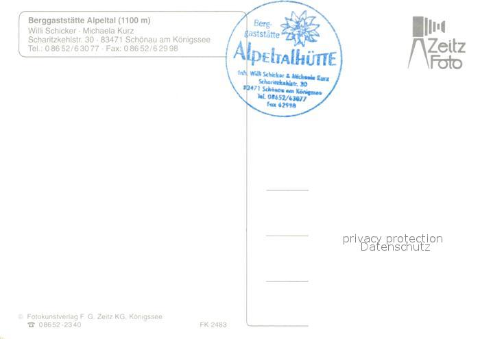 73081077 Schoenau Koenigssee Berggaststaette Alpeltal Alpen postalisch nicht gelaufen Erhaltung siehe scans [FriedD77] KatCode: 11110009172132