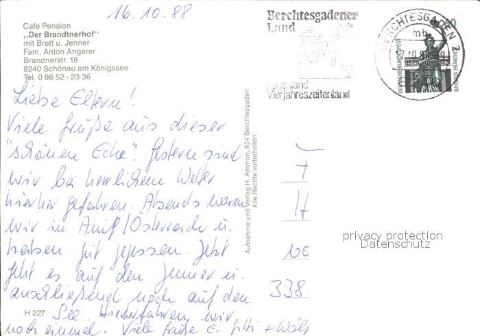 72017110 alte Postkarte Schoenau Koenigssee Cafe Pension Der Brandtnerhof postalisch gelaufen Erhaltung siehe scans KatCode: 11110009172132