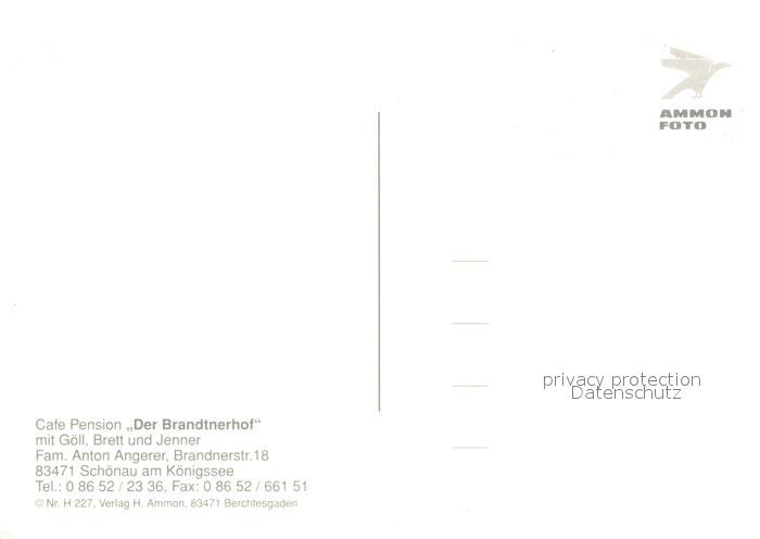 73703504 Schoenau Koenigssee Cafe Pension Der Brandtnerhof Alpen postalisch nicht gelaufen Erhaltung siehe scans [FriedD77] KatCode: 11110009172132