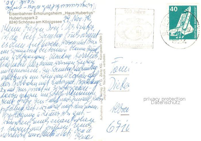 73615113 alte Postkarte Schoenau Koenigssee Eisenbahner Erholungsheim Haus Hubertus Details postalisch gelaufen Erhaltung siehe scans [WerneD78] KatCode: 11110009172132
