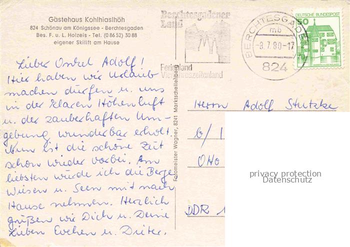 74095393 alte Postkarte Schoenau Koenigssee Gaestehaus Kohlhiaslhoeh postalisch gelaufen Erhaltung siehe scans [WerneD78] KatCode: 11110009172132