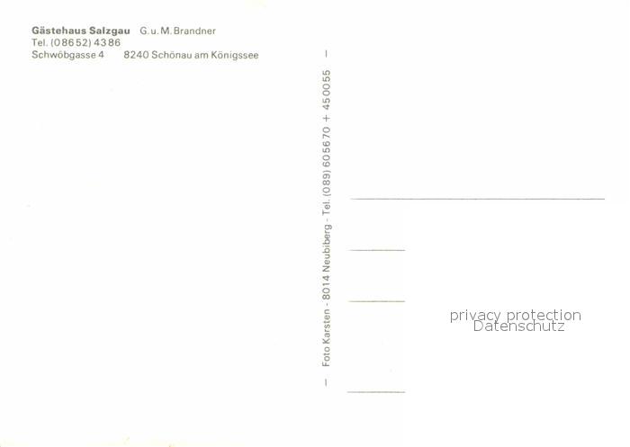 72719360 Schoenau Koenigssee Gaestehaus Salzgau Landschaftspanorama Alpen postalisch nicht gelaufen Erhaltung siehe scans [FriedD77] KatCode: 11110009172132