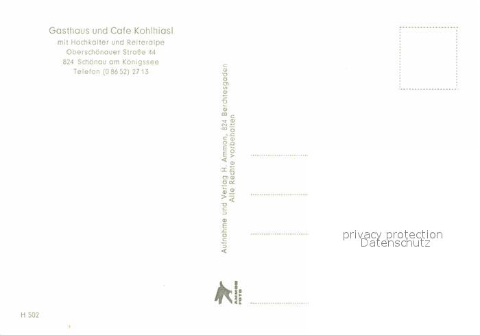 72700660 Schoenau Koenigssee Gasthaus und Cafe Kohlhiasl mit Hochkalter und Reiteralpe postalisch nicht gelaufen Erhaltung siehe scans [WerneD78] KatCode: 11110009172132
