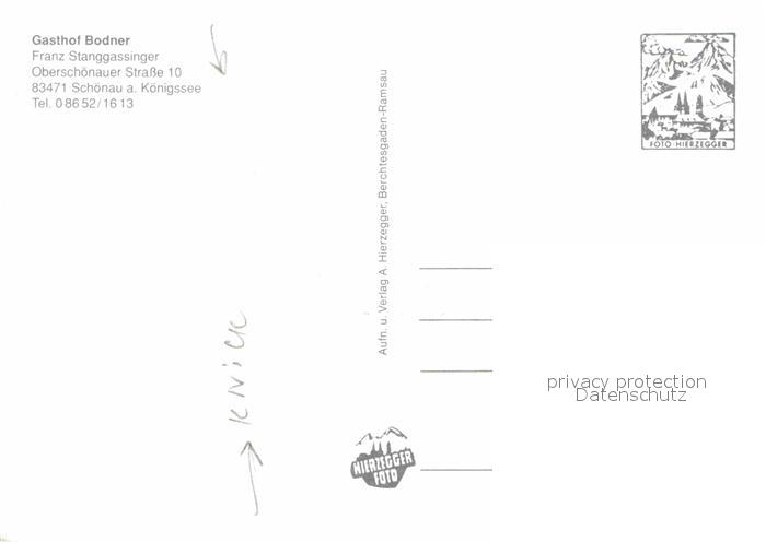 72766032 Schoenau Koenigssee Gasthof Bodner postalisch nicht gelaufen Erhaltung siehe scans [LiesaD40] KatCode: 11110009172132