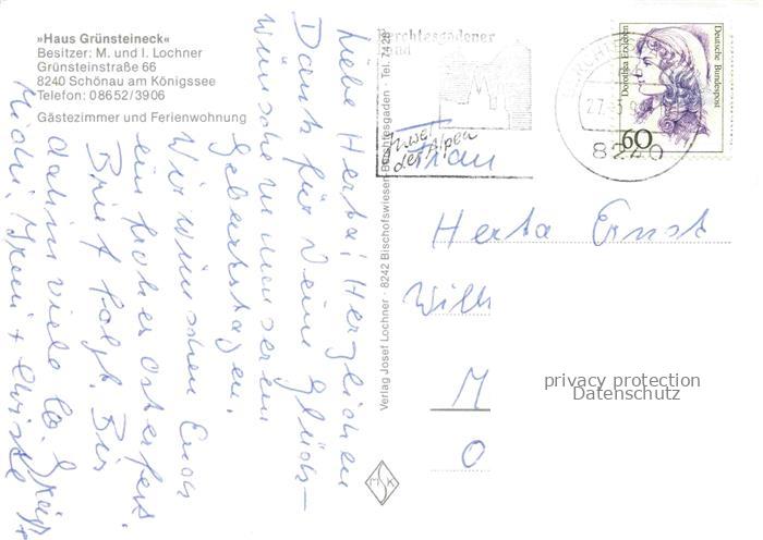 74110917 alte Postkarte Schoenau Koenigssee Haus Gruensteineck postalisch gelaufen Erhaltung siehe scans [WerneD78] KatCode: 11110009172132