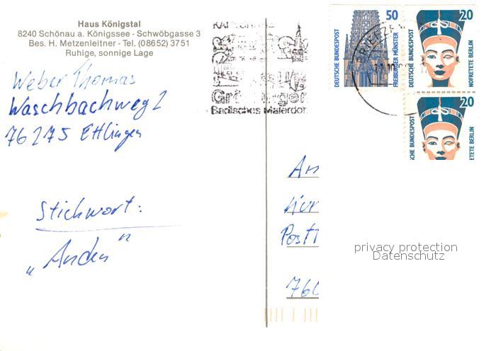 72958393 alte Postkarte Schoenau Koenigssee Haus Koenigstal postalisch gelaufen Erhaltung siehe scans [NatalD47] KatCode: 11110009172132