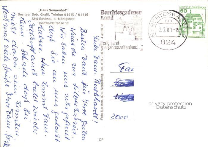 72463830 alte Postkarte Schoenau Koenigssee Haus Sonnenhof postalisch gelaufen Erhaltung siehe scans KatCode: 11110009172132